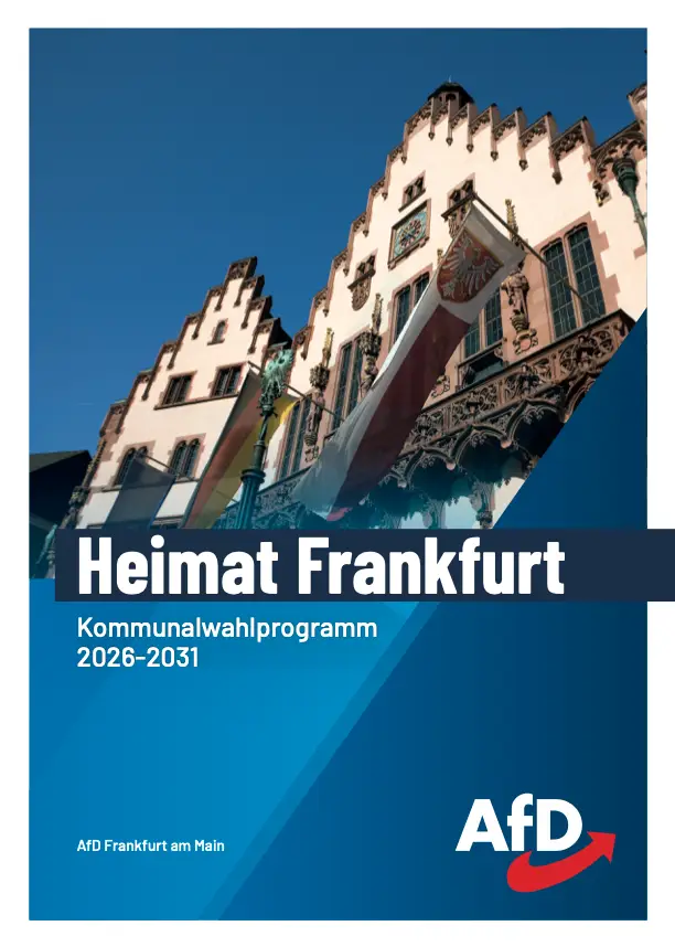 Die AfD Frankfurt am Main hat ihr Wahlprogramm zur Kommunalwahl 2026 veröffentlicht, das bereits auf einem Kreisparteitag im September von den Mitgliedern beschlossen wurde.